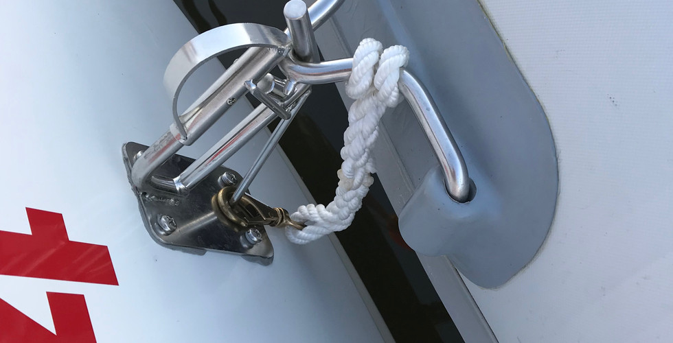 Tijdens onze vakantie in 2017 hebben wij gemerkt dat een rubberboot, aka WR4tje, een heel belangrijke toevoeging is voor onze reis. Zonder fatsoenlijke davits om de boot aan op te hangen is de boot op het voordek een belemmering voor het zeilen en WR4tje slepen achter de boot is ook niet optimaal. Zodoende hebben wij zogenaamde "snapdavits" geïnstalleerd op de achterkant van de boot waarmee het WR4tje omhoog kan worden gescharnierd.