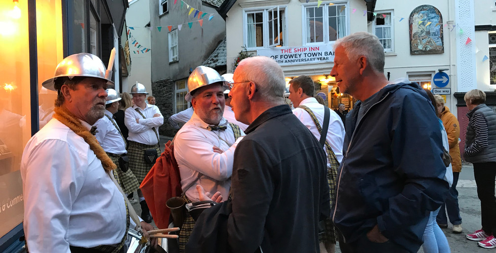 As is true in so many towns Fowey has its own history and traditions, one of these traditions which in fact on the day of our visit is celebrating its 50th anniversary: the Fowey Town band. One of the key conditions to become a member of the band is that you must not be able to play any musical instrument at all. Band members are issued with official Fowey Band tin drums but members must supply their own drum sticks, these are often sawn off broom handles. An incredible sight and cacophony.
