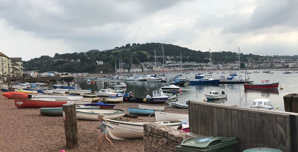 The next morning we wave goodbye to Torquay and set sail for Teignmouth, a lovely seaside town where we can tie up on a pontoon in the middle of the estuary. We go by dinghy to the beach at Shaldon on the west side of the estuary and walk to the Ode Cafe where Kate treats us to a delicious lunch.